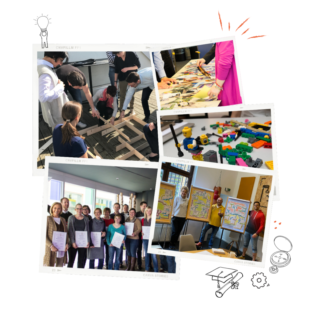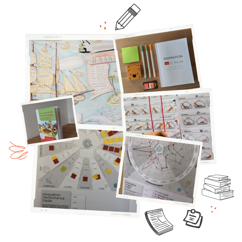 Um Menschen zu mehr Ideenreichtum und Innovation zu befähigen, sammeln wir Innovationswissen, entwickeln Tools, schreiben Bücher und bilden Menschen in unseren Ausbildungen zu Innovation Coaches, Scouts und Guides aus.